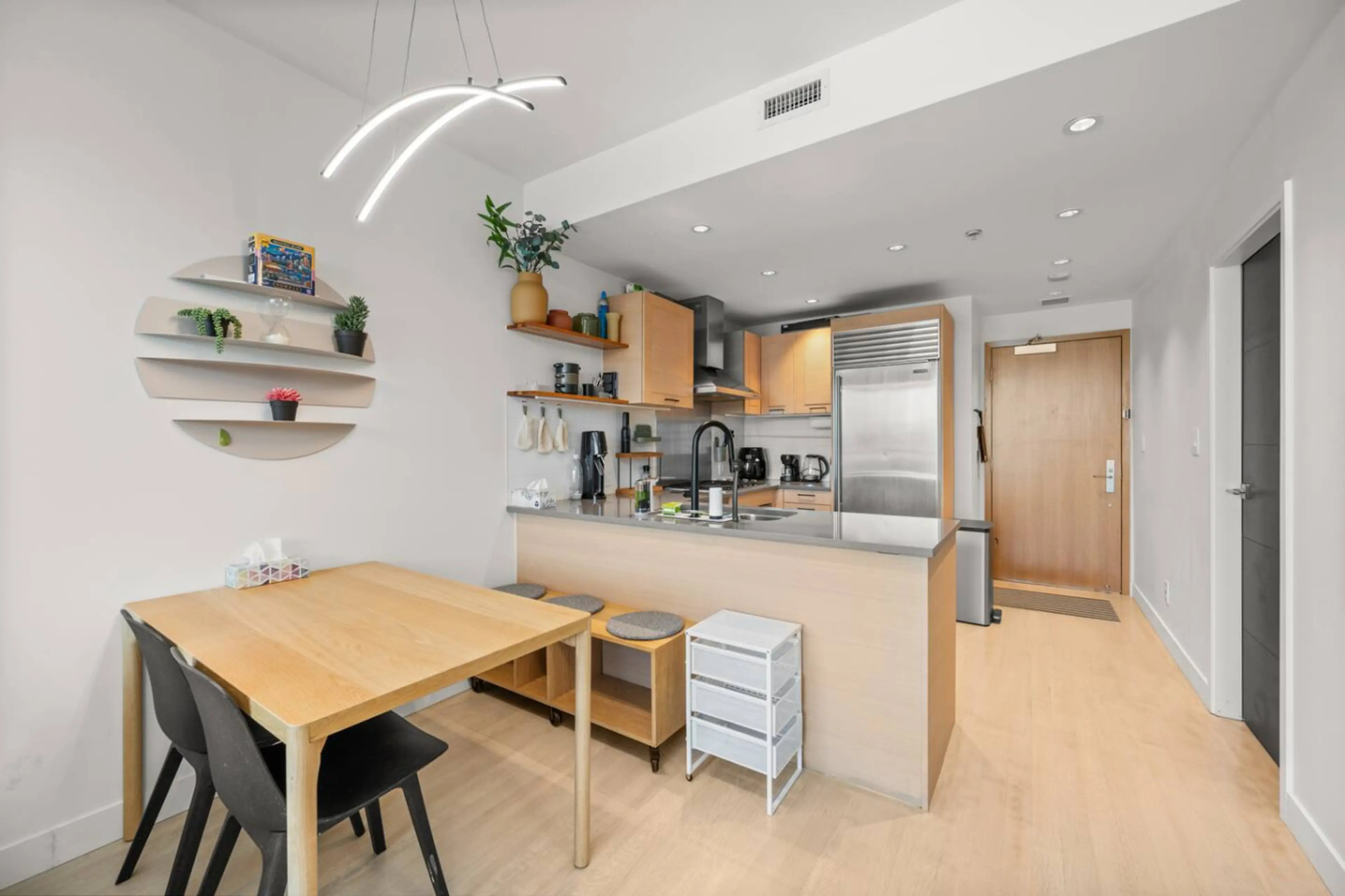 Perched 2-bedroom suite with stunning mountain and ocean views—just above one of Canada’s best Asian food courts. Eat, shop, and explore without ever stepping outside. Fast Wi-Fi, modern finishes, and recent renovations offer a clean, bright, and comfortable stay. With direct SkyTrain access and min...