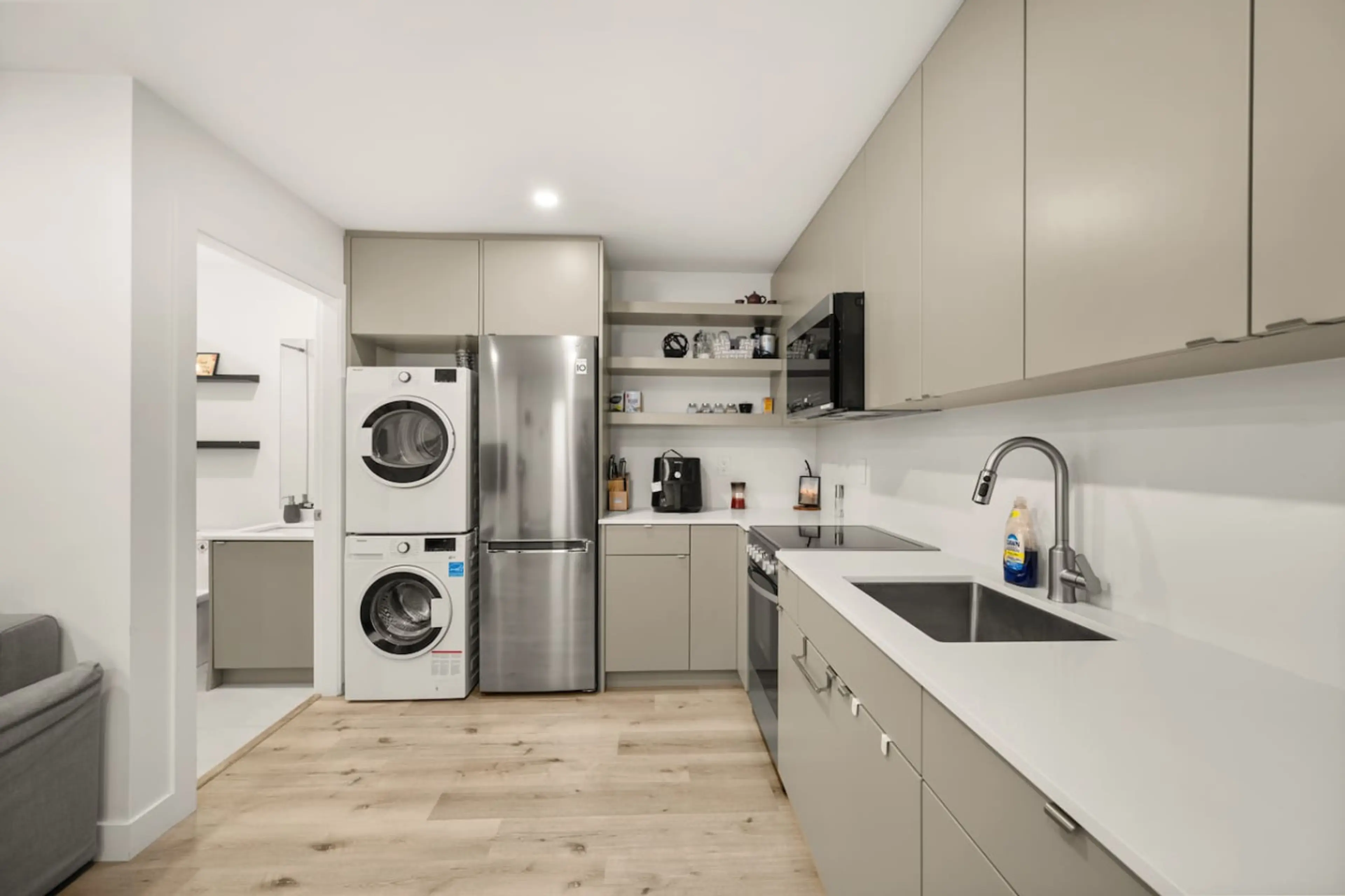 Modern one-bedroom suite with full kitchen and in-suite laundry in a clean, compact layout. Completely private with no shared spaces; other suites exist in the house but nothing is shared except outdoor garbage disposal. Located near Central Park and close to SkyTrain, with easy access to downtown. ...